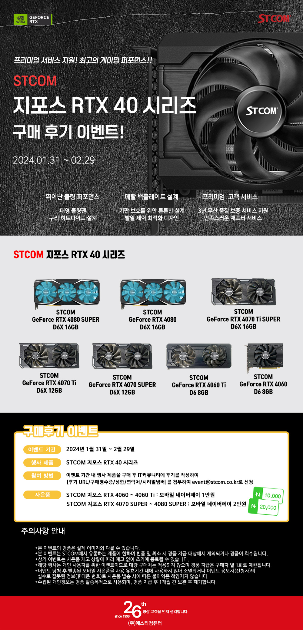 [종료] RTX40슈퍼 출시 기념! STCOM 지포스 RTX 40 시리즈 그래픽카드 구매자 대상 후기 작성 행사 진행