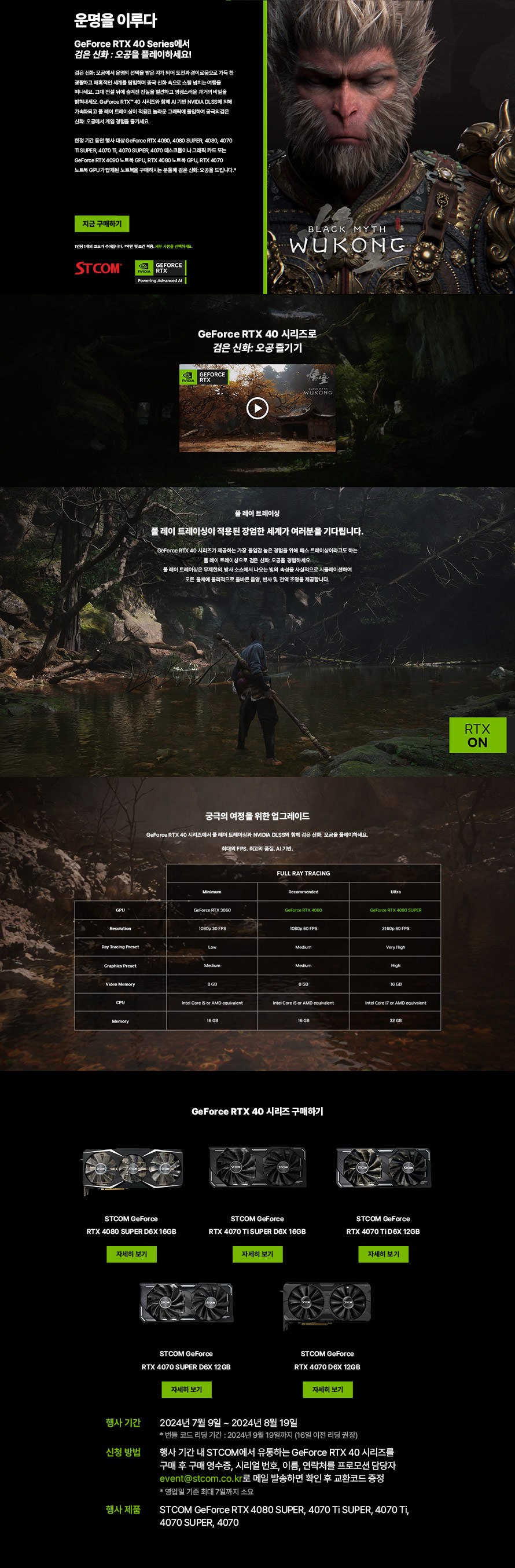 [종료] STCOM 지포스 RTX 40 시리즈 그래픽카드 구매자 대상 검은 신화 오공 게임 번들 행사 진행