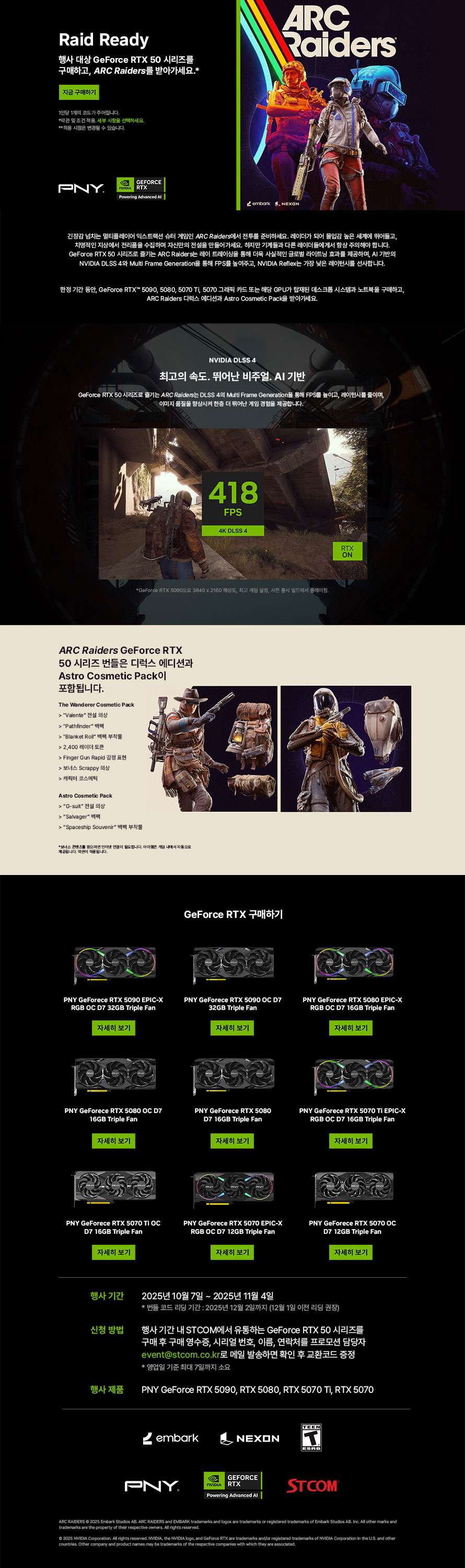 STCOM, PNY 지포스 RTX 50 시리즈 구매자 대상 아크 레이더스 게임 번들 증정 행사 진행