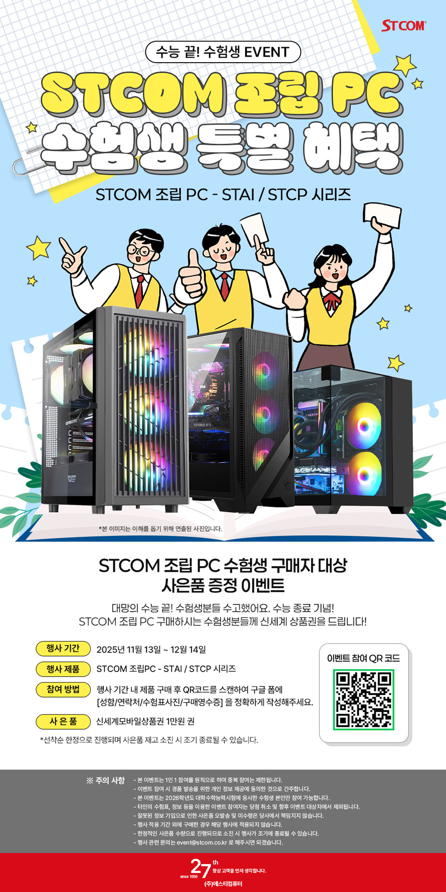 2026년 수험생 대상 STCOM 조립 PC 구매 시 사은품 증정 이벤트 진행