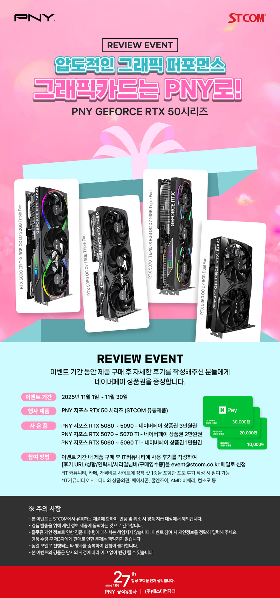 STCOM, 11월 PNY 지포스 RTX 50 시리즈 구매자 대상 후기 작성 이벤트 진행