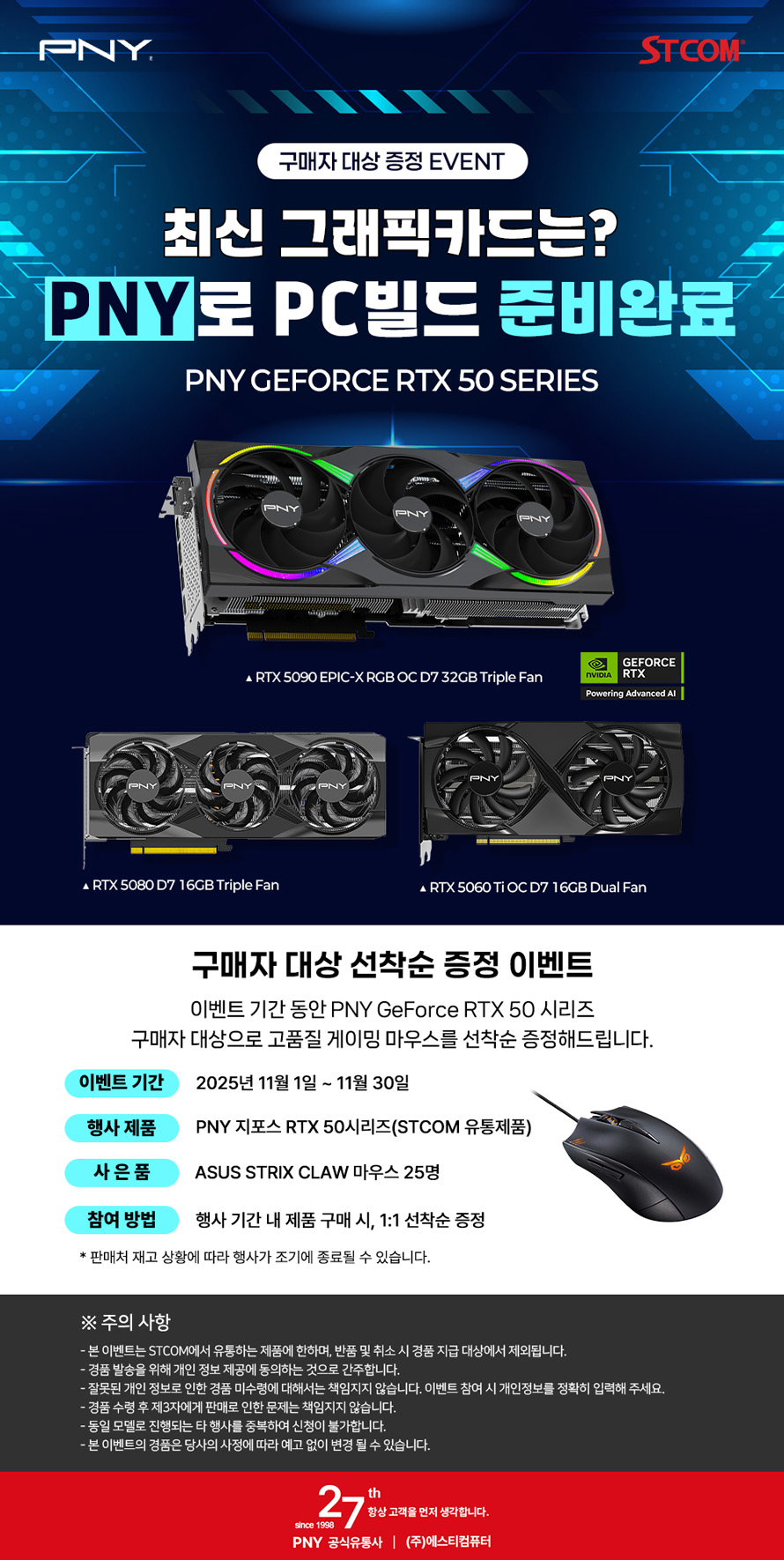 STCOM, 11월 PNY 지포스 RTX 50 시리즈 구매자 대상 선착순 사은품 증정 이벤트 진행