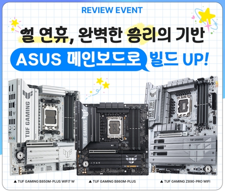 본 행사는 ASUS의 인텔 최신 플랫폼인 코어 울트라 프로세서 전용 메인보드인 Z890, B860 시리즈와 AMD 라이젠 7000/8000/9000 시리즈용 X870(E), B850, B650(E) 메인보드 제품을 대상으로 진행된다. 뛰어난 퀄리티와 성능 대비 합리적인 가격으로 많은 유저들에게 사랑을 받고 있는 TUF Gaming B850M-PLUS WIFI7도 포함되어 더욱 가성비 있게 고사양 PC를 맞출 수 있다.