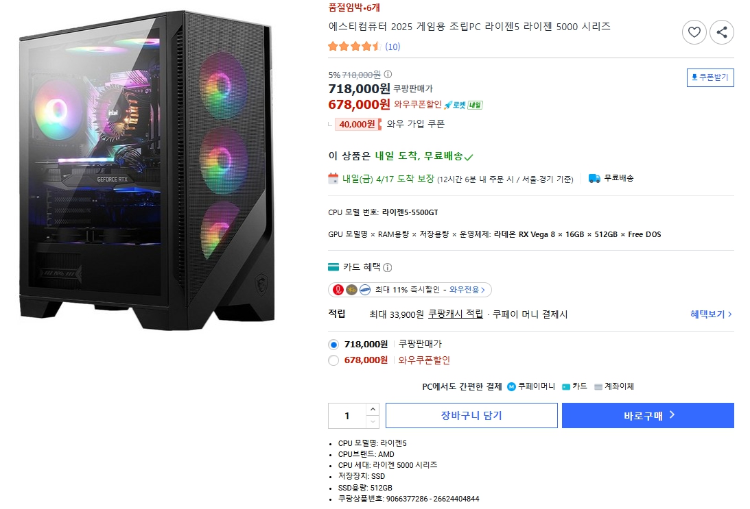 와우 멤버십 회원을 대상으로 5만 원의 전용 쿠폰 할인을 제공하며, 와우 전용 카드로 결제 시 4만 원의 즉시 할인 혜택을 추가로 지원한다. 이를 통해 고객들은 더욱 경제적인 가격으로 고품질 사무용 PC를 마련할 수 있다.