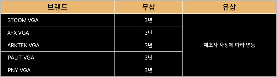 (2) 제품 성능에 영향을 미치지 않는 경우 제조사 사정에 따라 VGA 부품 제조사는 변경될 수 있습니다.