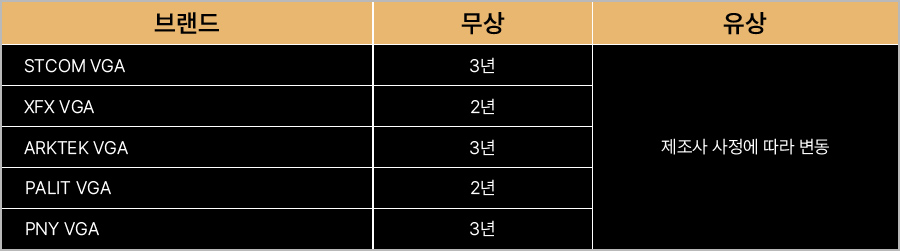 * 브랜드별 무상보증기간 안내